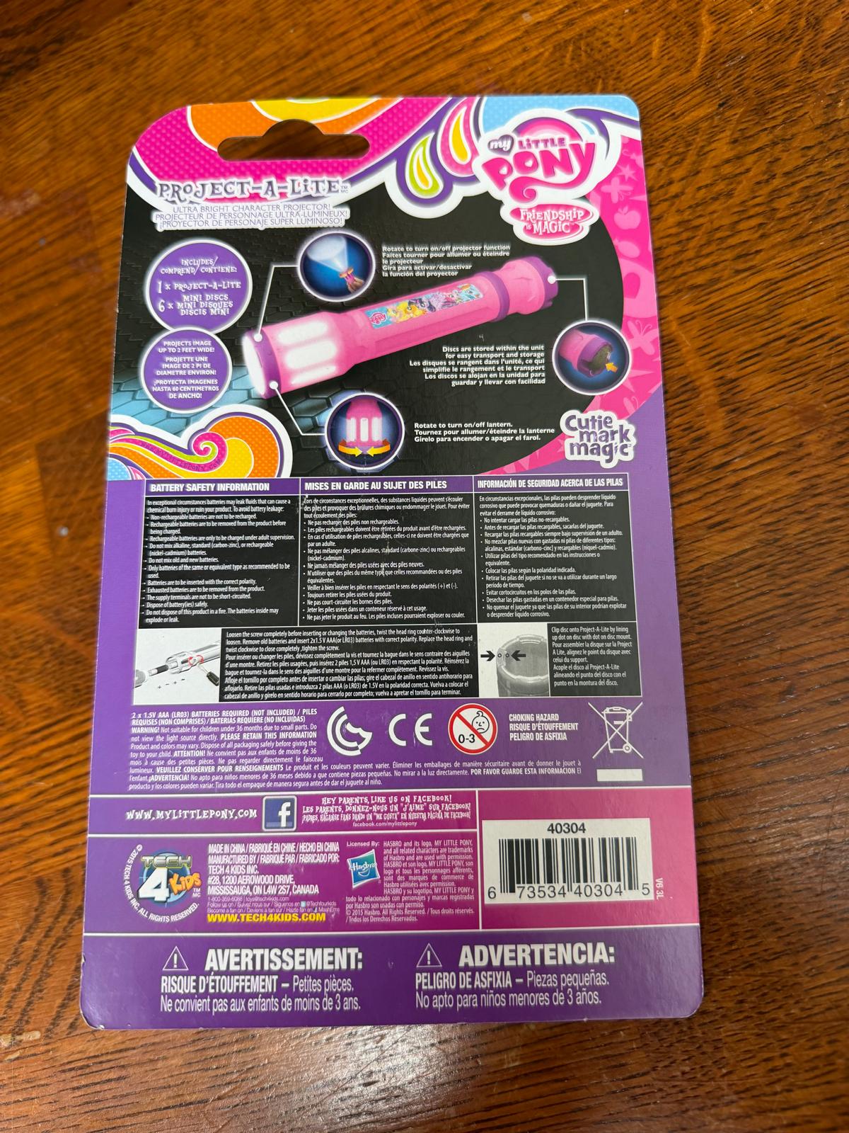 My Little Pony 3 in 1 Flashlight. Flashlight, Lantern, Projector. Units - 10,000 EAN - 673534403045 RRP - £8.99 Take All Price - £1.25 Smaller Quantities Negotiable Location - UK Usual T&Cs apply. Deposit 10% and then Inspection, Pay Balance and you arrange Collection. All goods sold plus VAT & "X works" and deposit is NON refundable - Only refundable if goods are not as described above.