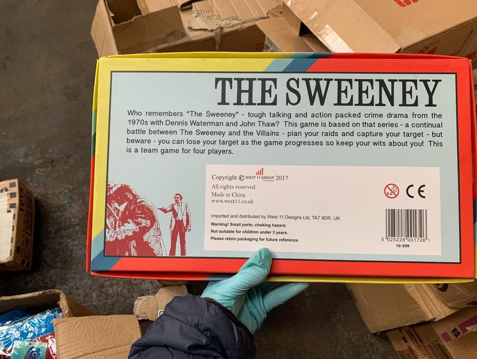 The Sweeney Board GameVintage, Brand New and Sealed. Units - 500Pallets - 1 RRP - £14Price - £1.08 per unitLocation - UKUsual T&Cs apply. Deposit, Inspection, Pay Balance and you arrange Collection.All goods sold "X works" and deposit is NON refundable - Only refundable if goods are not as described above.